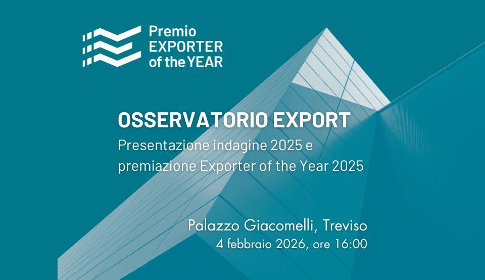 Presentazione dell’OSSERVATORIO EXPORT indagine 2025 e premiazione Exporter of the Year 2025. Treviso, 4 febbraio 2026, ore 16:00