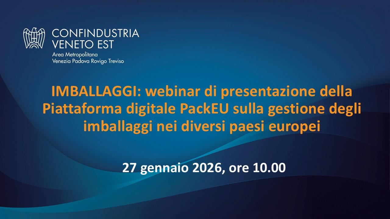 Imballaggi: webinar di presentazione della Piattaforma digitale PackEU sulla gestione degli imballaggi nei diversi paesi europei - 27 gennaio 2026 ore 10.