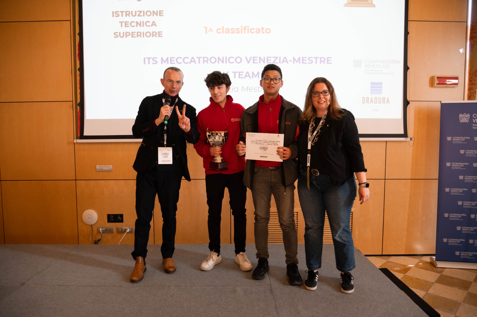 Una volta terminate le prove, sono stati proclamati i vincitori, premiati da Alessia Miotto, Presidente del Gruppo Metalmeccanico di Confindustria Veneto Est, Chiara Rossetto, Delegata Education di Confindustria Veneto Est, Matteo Zanandrea, Presidente e Managing Director di Dradura Italia, e Stefano Franchi, Direttore Generale di Federmeccanica: l’Istituto ITS Meccatronico Veneto corso di Mestre con la squadra composta da Pistorello Nicolò, Brugnotto Davide, Norcen Wei Ye e Polo D’ambroso Filippo, ha vinto il premio nella categoria Istruzione Tecnica Superiore Meccatronico Veneto; il premio della categoria Istruzione Professionale è andato all’Istituto Munari-Bari di Badia Polesine con il team formato da Aguiari Luca, Bertesina Diego, Casari Gabriele e Trevisan Andrea; per la categoria Formazione Professionale ha vinto Engim Turazza di Treviso con la squadra composta da Favaro Simone, Roman Cristian Marian, Petrucci Stefano e Dalle Feste Marco; la categoria Licei Scientifici è stata vinta dal liceo Galilei di San Donà di Piave e gli studenti Enzo Simone, D’Agostin Antonio, Pizzol Enrico e Mattiuzzio Marta; infine, il Giorgi-Fermi di Treviso con il team formato da Campeol Thomas, Facchin Nicola, Fighera Nicola e Mason Luca si è aggiudicato la categoria Istruzione Tecnica.