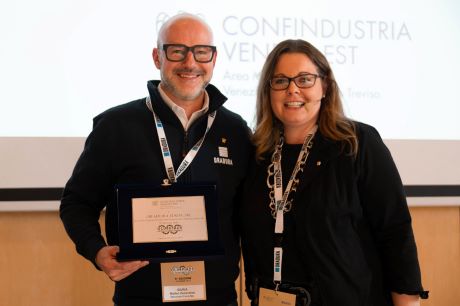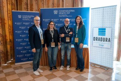 Nella foto centrale Alessia Miotto presidente del Gruppo delle imprese metalmeccaniche di Confindustria Veneto Est e Matteo Zanandrea AD di Dradura Italia Srl.
