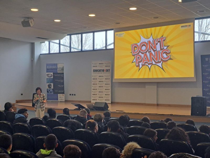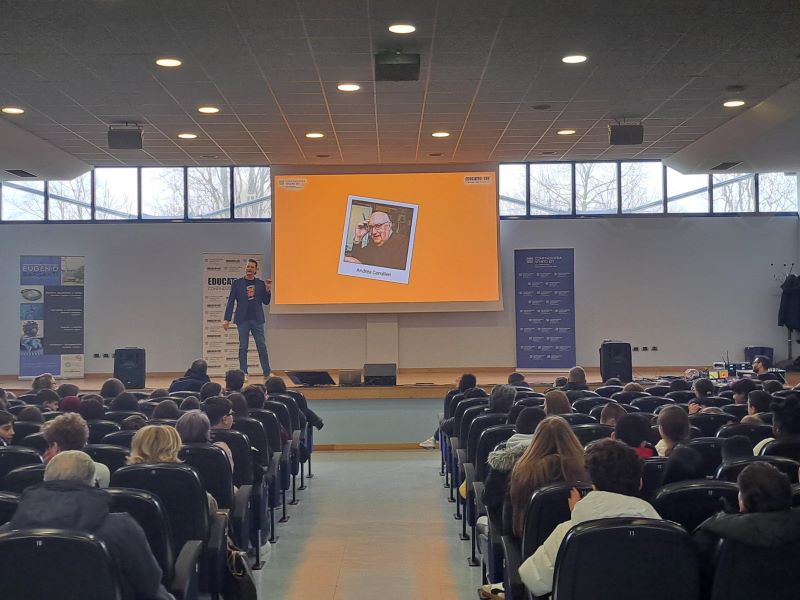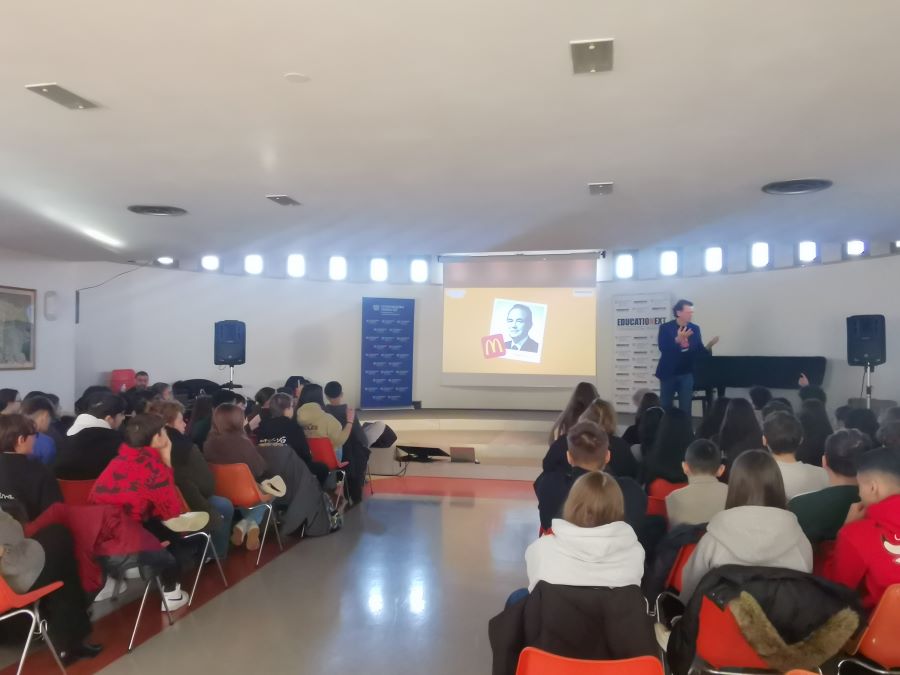 Studenti e studentesse delle classi 3^ e 2^ sono stati coinvolti in uno spettacolo dinamico pensato in collaborazione con TeatroEducativo.it per aiutarli ad affrontare la scelta della scuola superiore, un invito a credere in se stessi, sperimentare e a prendere in mano il proprio destino, passo dopo passo. Un momento di informazione e riflessione che ha esplorato il percorso non lineare della vita, dove ogni decisione apre nuove porte. La narrazione ha alternato entusiasmo e momenti di malinconia, parlato di passioni, sogni e pressioni quotidiane da famiglia, amici e scuola, errori e successi come parte integrante del cammino di crescita e costruzione del proprio futuro. A portare il saluto di Confindustria Veneto Est l’imprenditore Massimo Granzotto.