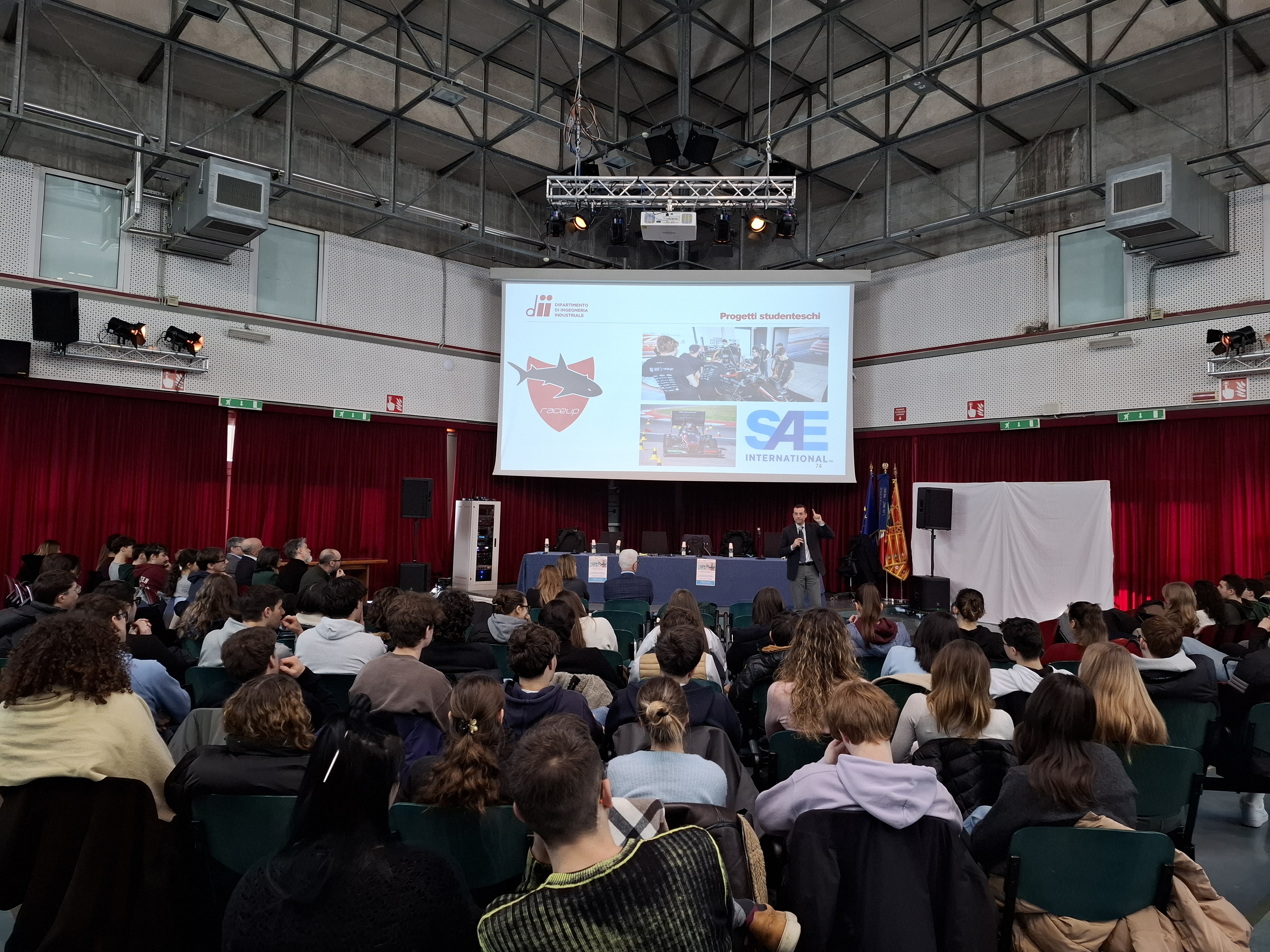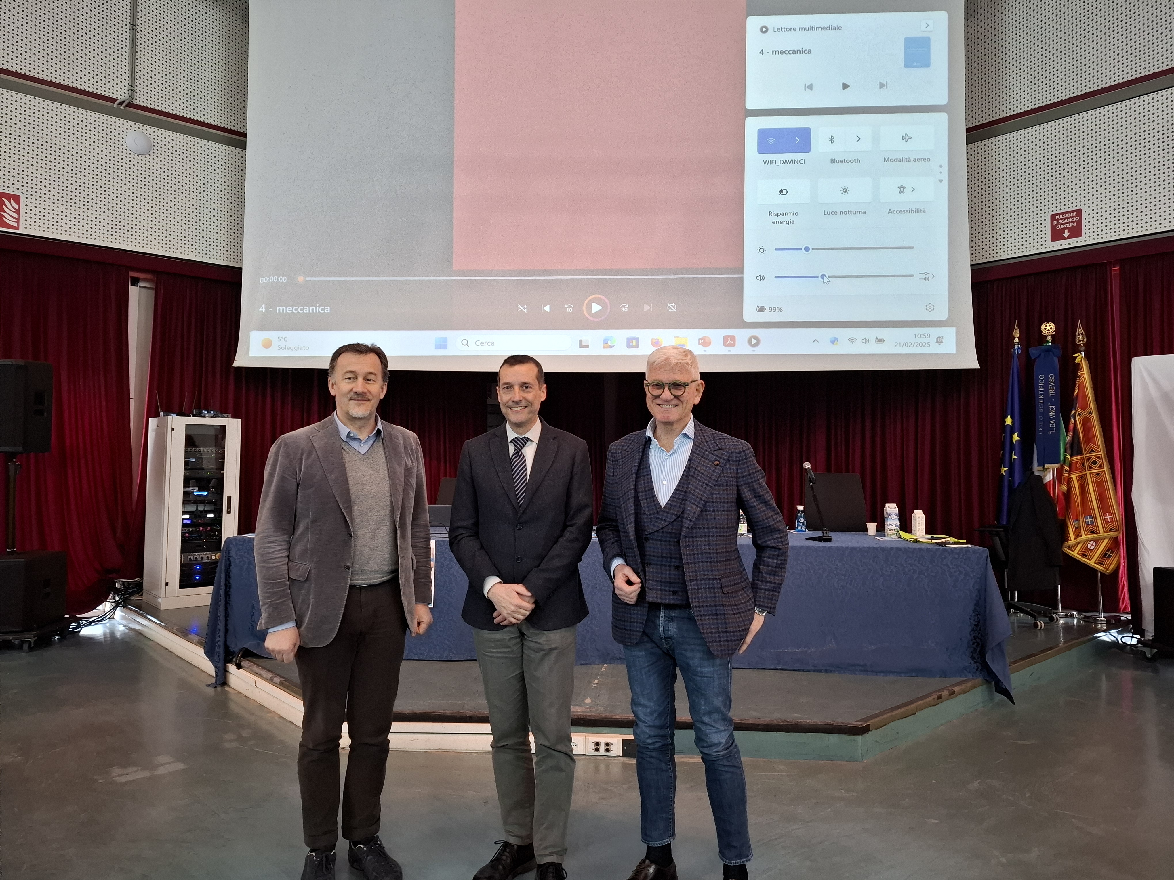 Dopo i saluti di Mario Dalle Carbonare, Dirigente scolastico del “Liceo Da Vinci” e Walter Bertin vice presidente di Confindustria Veneto Est, a illustrare i corsi di studio in Ingegneria meccanica è intervenuto il prof. Giovanni Meneghetti del Dipartimento Ingegneria industriale Università di Padova e presidente del corso di laurea in Ingegneria meccanica. Quindi le interessanti e qualificate testimonianze dalle aziende e dal mondo della ricerca con gli ingegneri Diego Lazzarin Product and system development manager di SONSUB (gruppo ENI – Saipem), Chiara Cascone, Operation Director ITW Inc , Michele Vazzoler, Design Manager GALDI Srl, Daniele Masiero, Mechanical Designer di MERMEC Spa, Mattia Manzolaro Research Engineer INFN (Istituto Nazionale Fisica Nucleare).