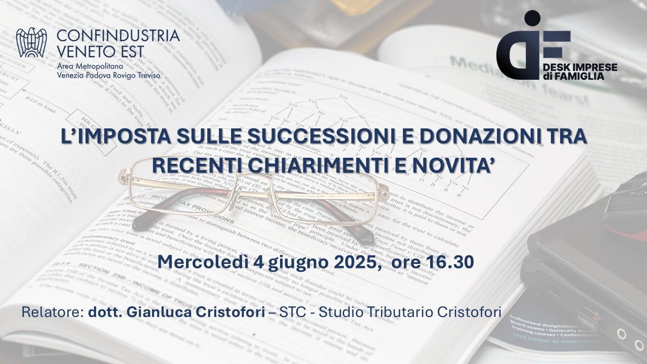 L’imposta sulle successioni e donazioni tra recenti chiarimenti e novità. Mercoledì 4 giugno 2025.