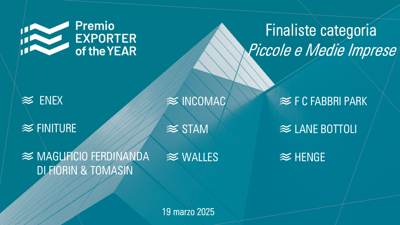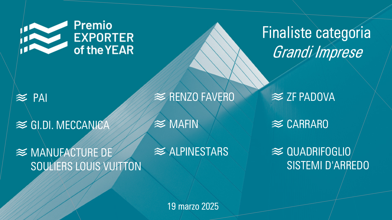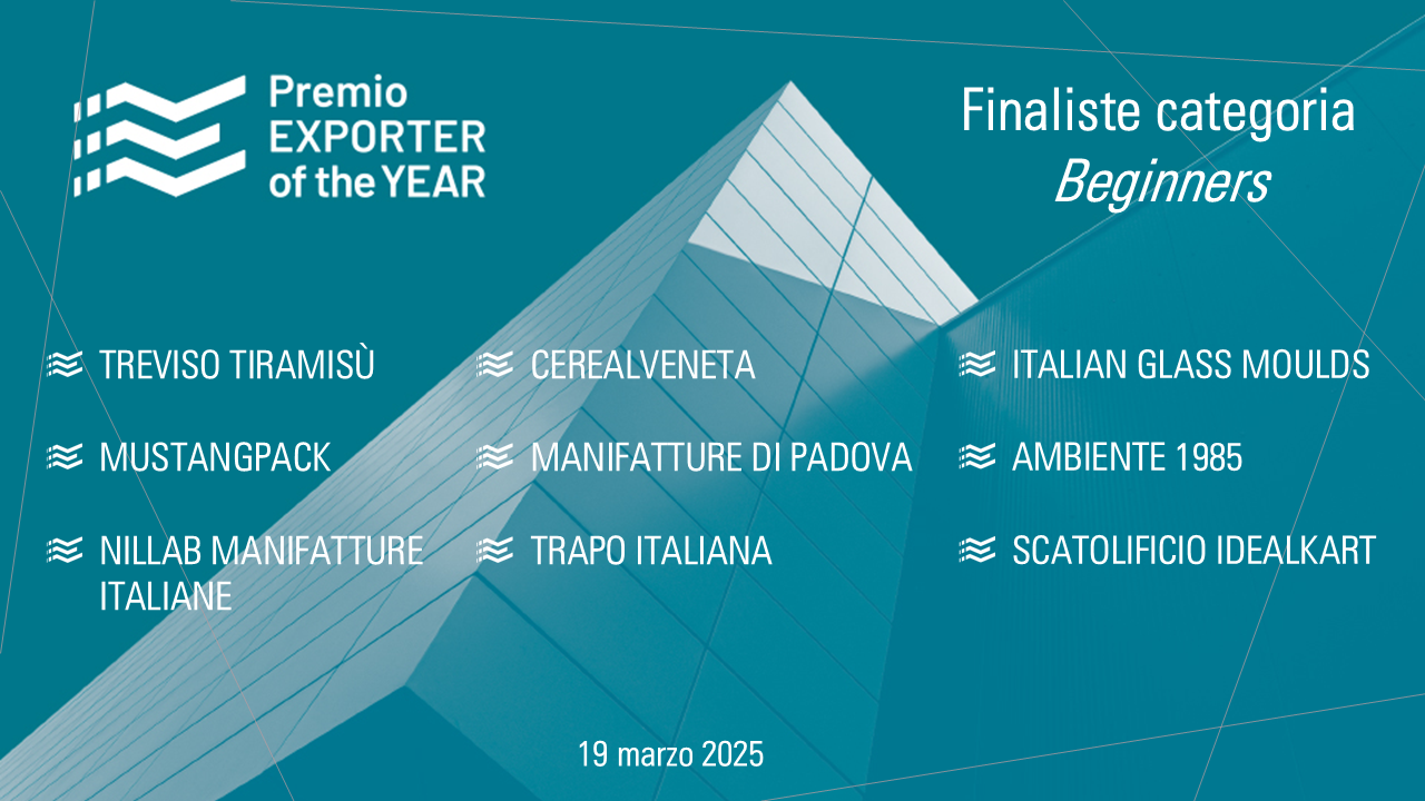 Collegato all’indagine “Osservatorio Export” di Confindustria Veneto Est ed ai suoi esiti, nasce nel 2022 il Premio “Exporter of the Year”, con l’obiettivo di dare visibilità a quelle aziende che hanno ottenuto le migliori performance in termini di export.