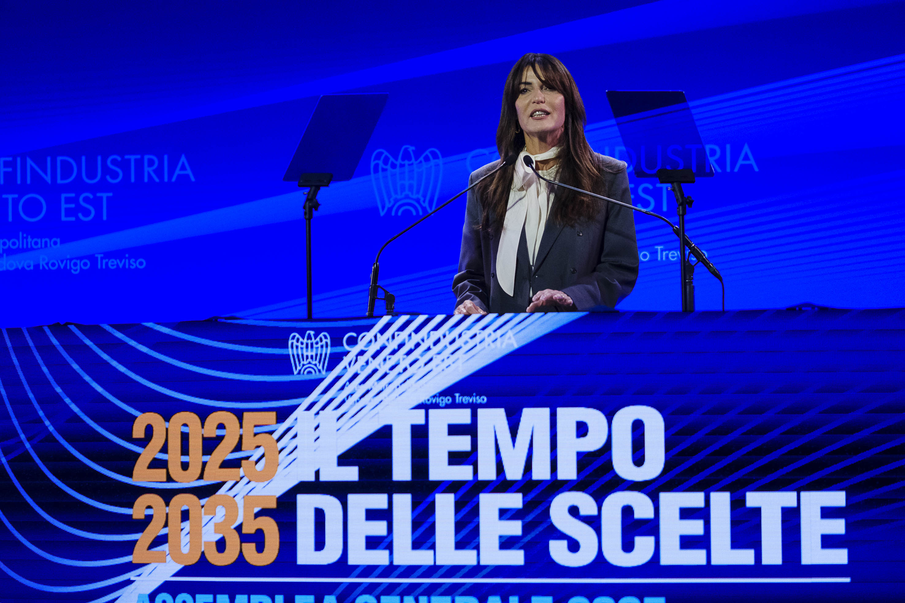 Paola Carron, alla sua prima Assemblea da Presidente di Confindustria Veneto Est, nella relazione di apertura ha sottolineato i cambiamenti senza precedenti – guerre, dazi, tecnologia – che hanno trasformato il mondo, alimentando il senso di solitudine degli imprenditori. Ma di fronte ai quali «c’è un’Italia silenziosa e tenace, consapevole di dover andare avanti. L’imprenditoria e la società venete ne sono parte integrante». Siamo la seconda manifattura d’Europa. «Eppure, in Italia si fa sempre più fatica a parlare di industria, nonostante la crescita appena dello 0,5% e il rischio di perdere partite cruciali come l’acciaio di base e l’automotive». Da qui un messaggio chiaro alla politica: «Senza una politica industriale forte e condivisa, la crescita resterà solo una parola. Non possono esserci dubbi: sostenere l’industria significa sostenere l’Italia».